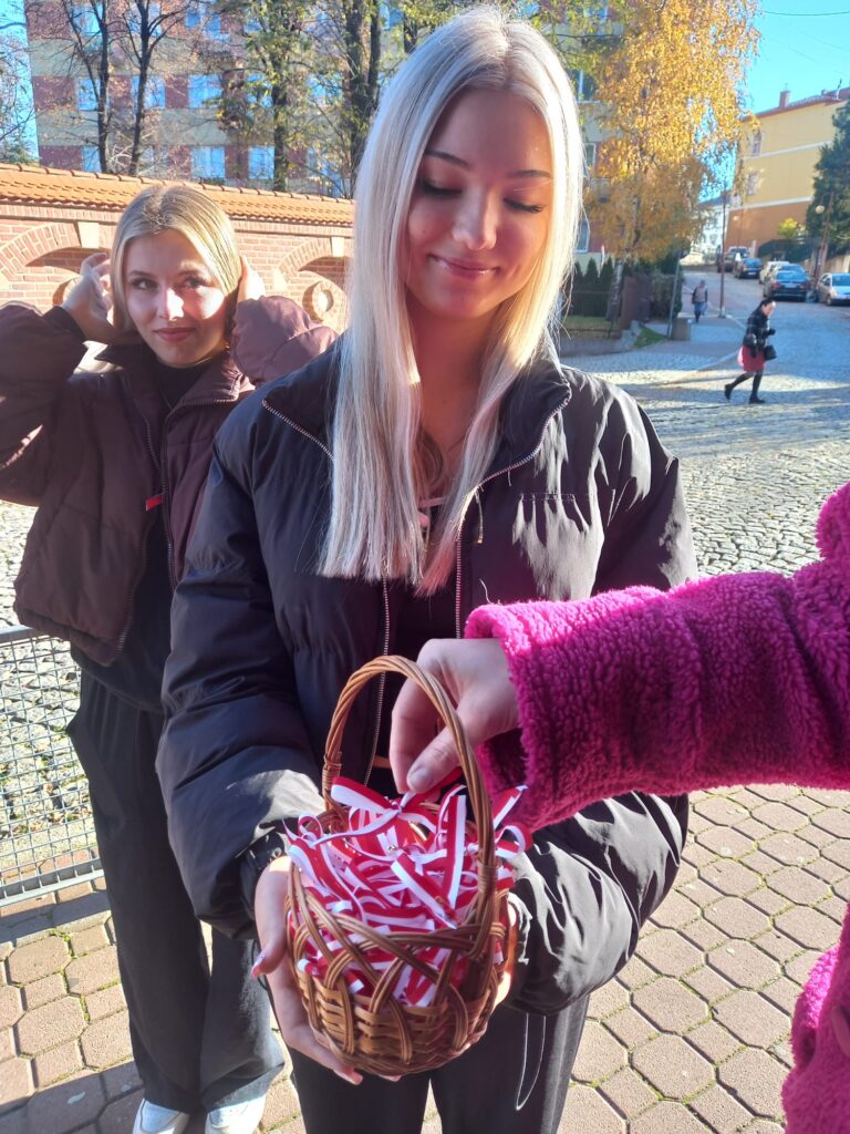 Uczniowie naszej szkoły przygotowali ponad 200 kotylionów. Te symbole patriotyzmu trafiły w piątek, 7 listopada, na ulice Tarnowa. Celem akcji jest zachęcenie mieszkańców do wspólnego świętowania w lokalnej społeczności. – Chcemy, by mieszkańcy naszej małej ojczyzny poczuli, że wspólne celebrowanie w duchu patriotycznym może być radosne.