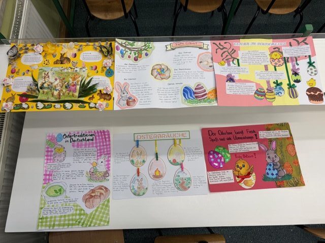Uczniowie klas pierwszych mieli okazję przenieść się w świat niemieckich tradycji dzięki konkursowi „Bunte Ostern auf Deutsch-Odkryj niemieckie tradycje wielkanocne