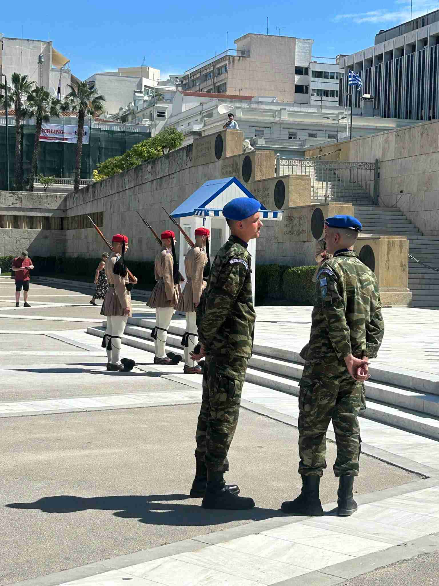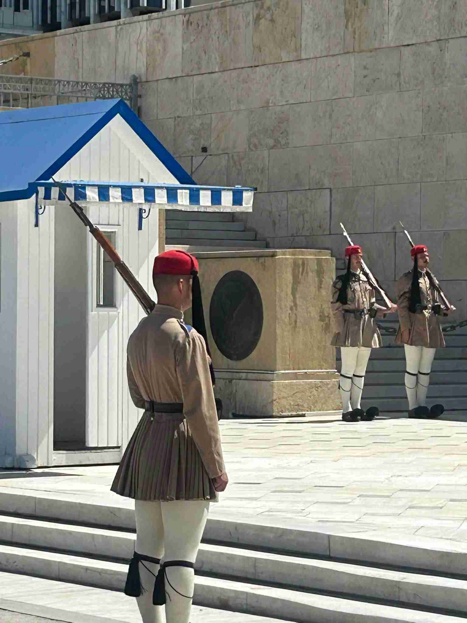 Jednym z najbardziej wzruszających momentów wycieczki była wizyta na głównym Placu Syntagma w Atenach, gdzie mogliśmy obserwować uroczystą zmianę warty honorowej.