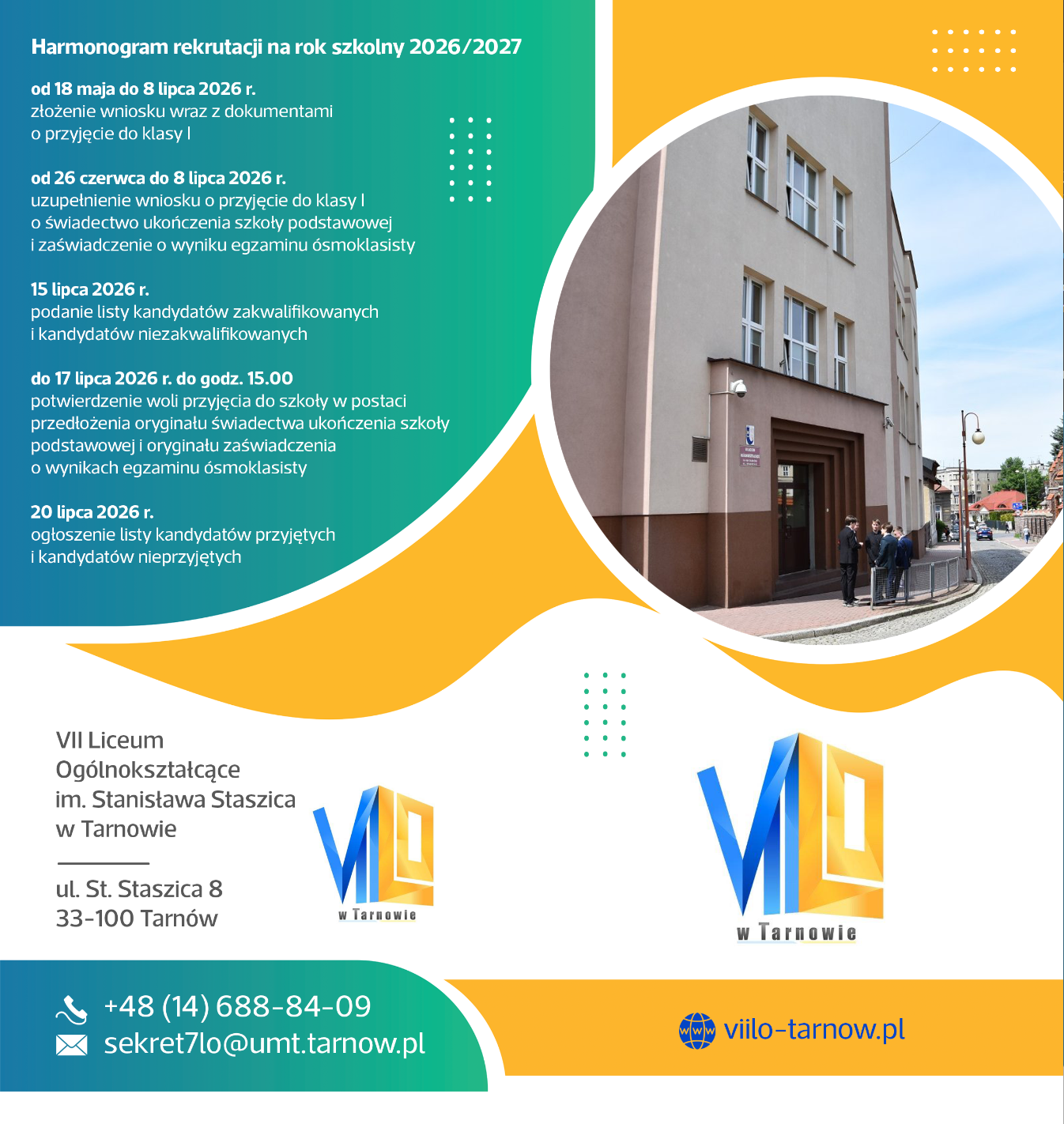 20 lipca 2026 r. – podanie do publicznej wiadomości przez komisję rekrutacyjną listy kandydatów przyjętych i kandydatów nieprzyjętych