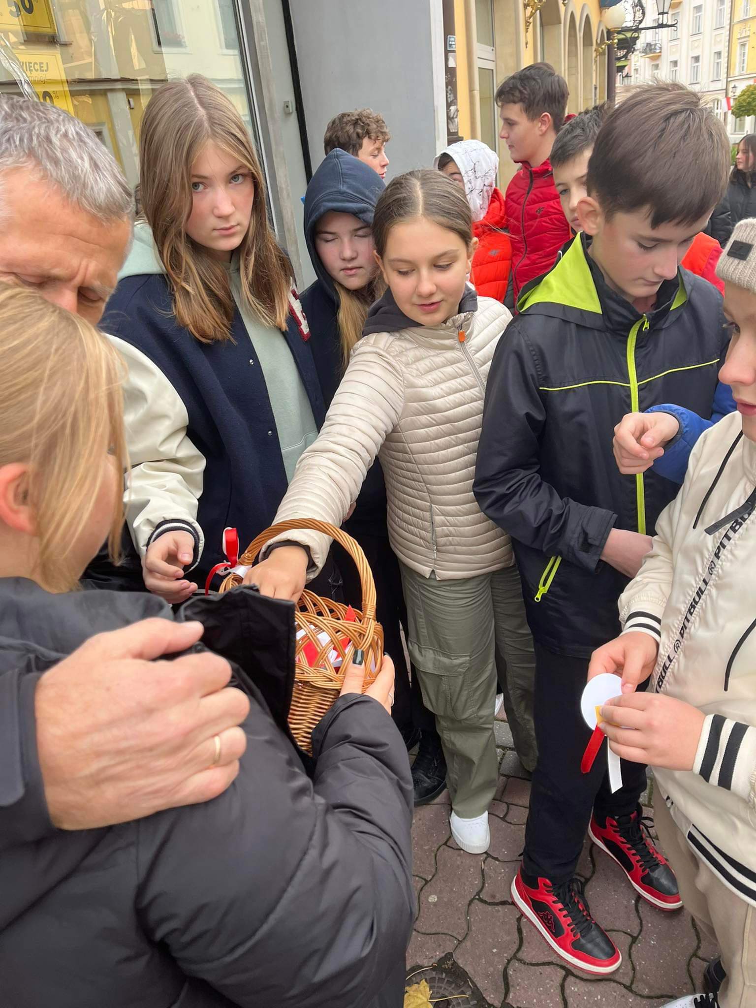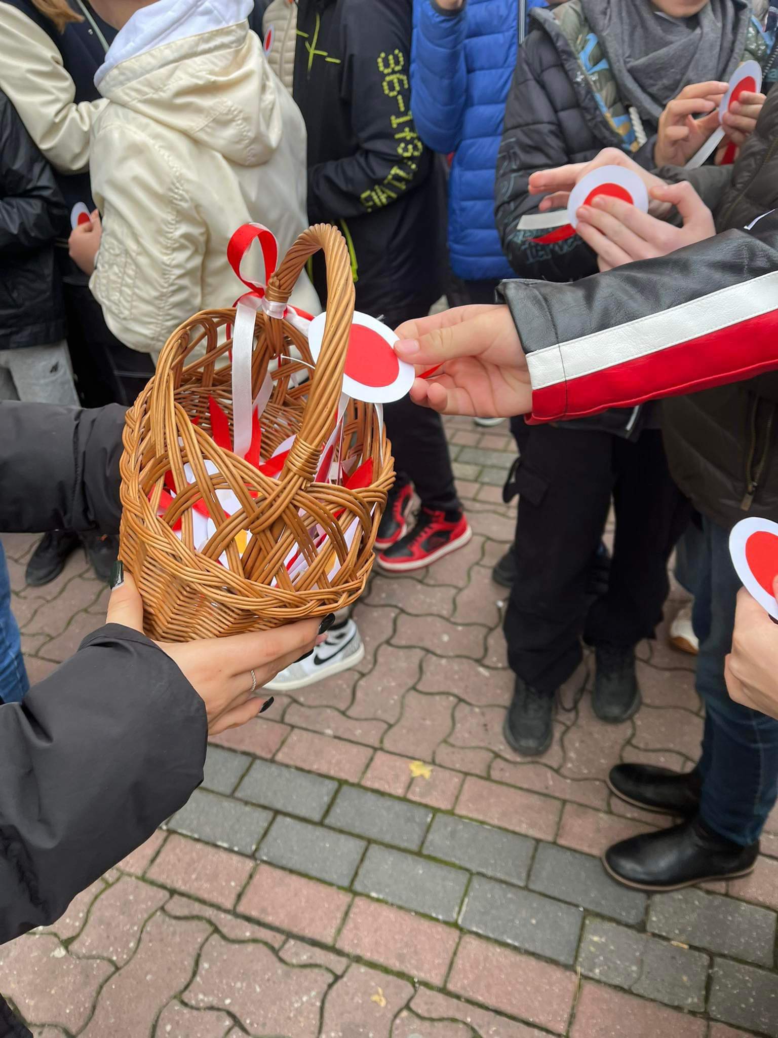 W przeddzień święta niepodległości uczennice z klasy 3a rozdawały mieszkańcom Tarnowa własnoręcznie wykonane biało-czerwone rozety.
